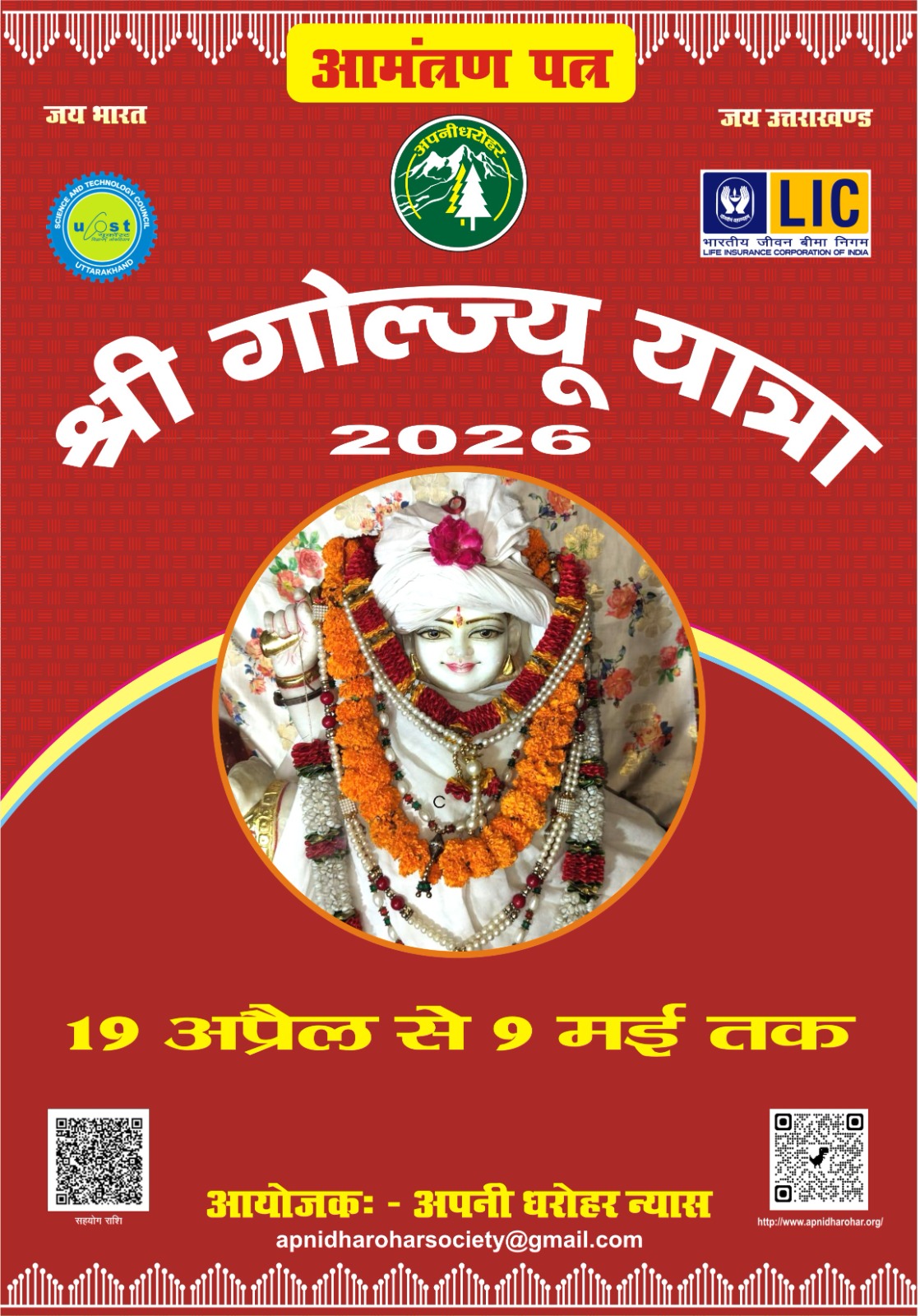 - 25 अप्रैल से 6 जून 2022: प्रथम श्री गोल्ज्यू संदेश यात्रा, माननीय मुख्यमंत्री श्री पुष्कर सिंह धामी जी द्वारा पूजन।