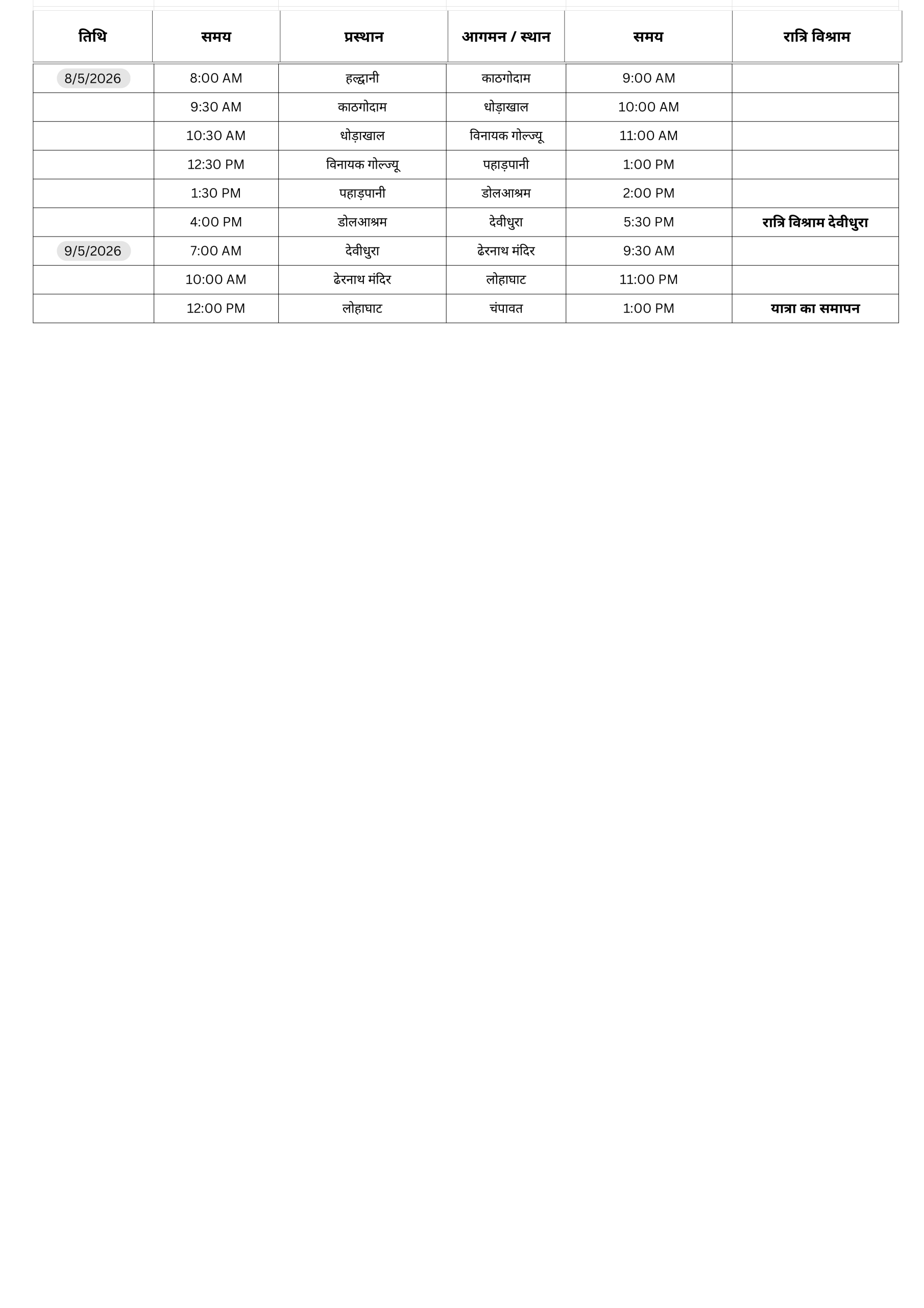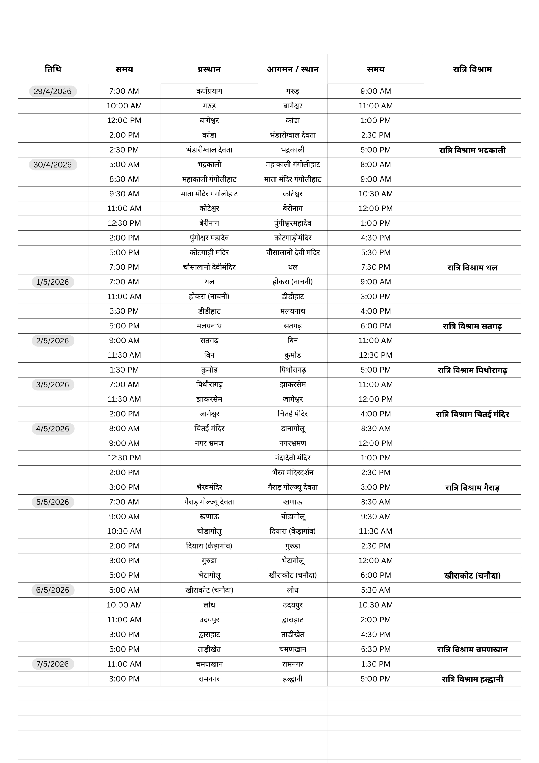 - 4 दिसम्बर 2021: जिला स्तरीय बैठकों का आयोजन, यात्रा की तैयारी हेतु।